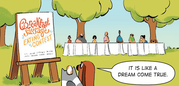 Contents and images used with permission by Penguin Kids, Penguin Random House. https://www.penguinrandomhouse.ca/books/740324/not-so-sweetie-pie-weenie-featuring-frank-and-beans-book-3-by-maureen-fergus-illustrated-by-alexandra-bye/9781774884904