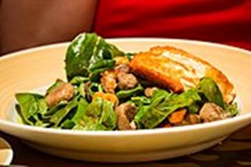 Contents and images used with permission by Yellow Deer Mustard. https://yellowdeermustard.com/warm-spinach-mushroom-and-bacon-salad-with-whisky-maple-mustard-vinaigrette/